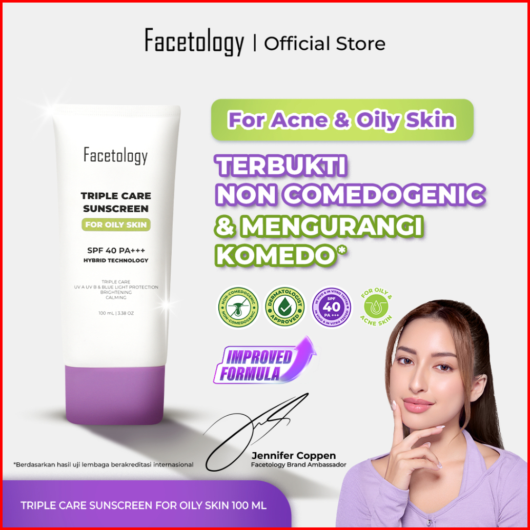 Bigger With New Formula Facetology Triple Care Sunscreen For Acne Oily Skin Spf 40 Pa 100ml