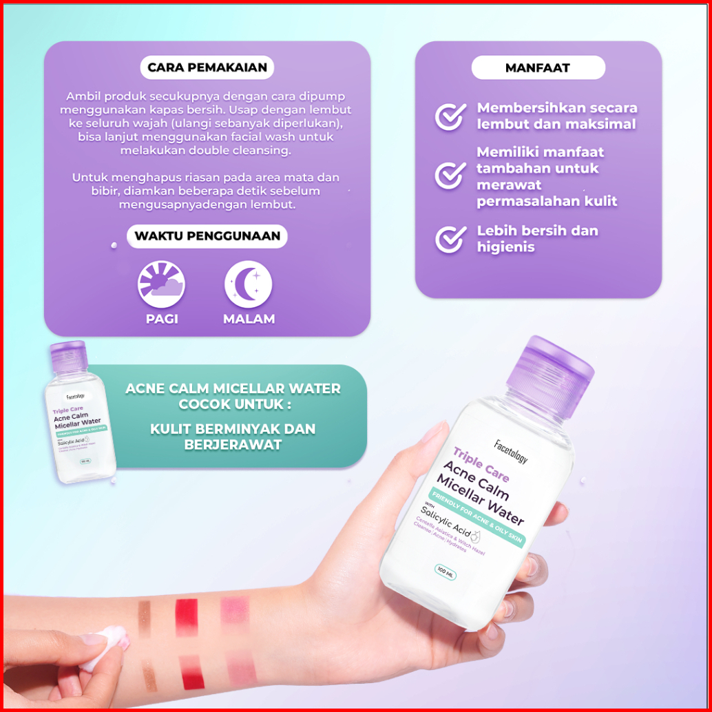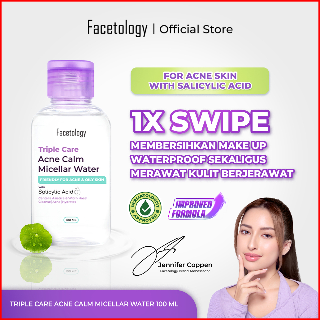 Exclusive Facetology Triple Care Acne Calm Micellar Water 100ml Pembersih Wajah Salicylic Acid Untuk Kulit Berjerawat Da