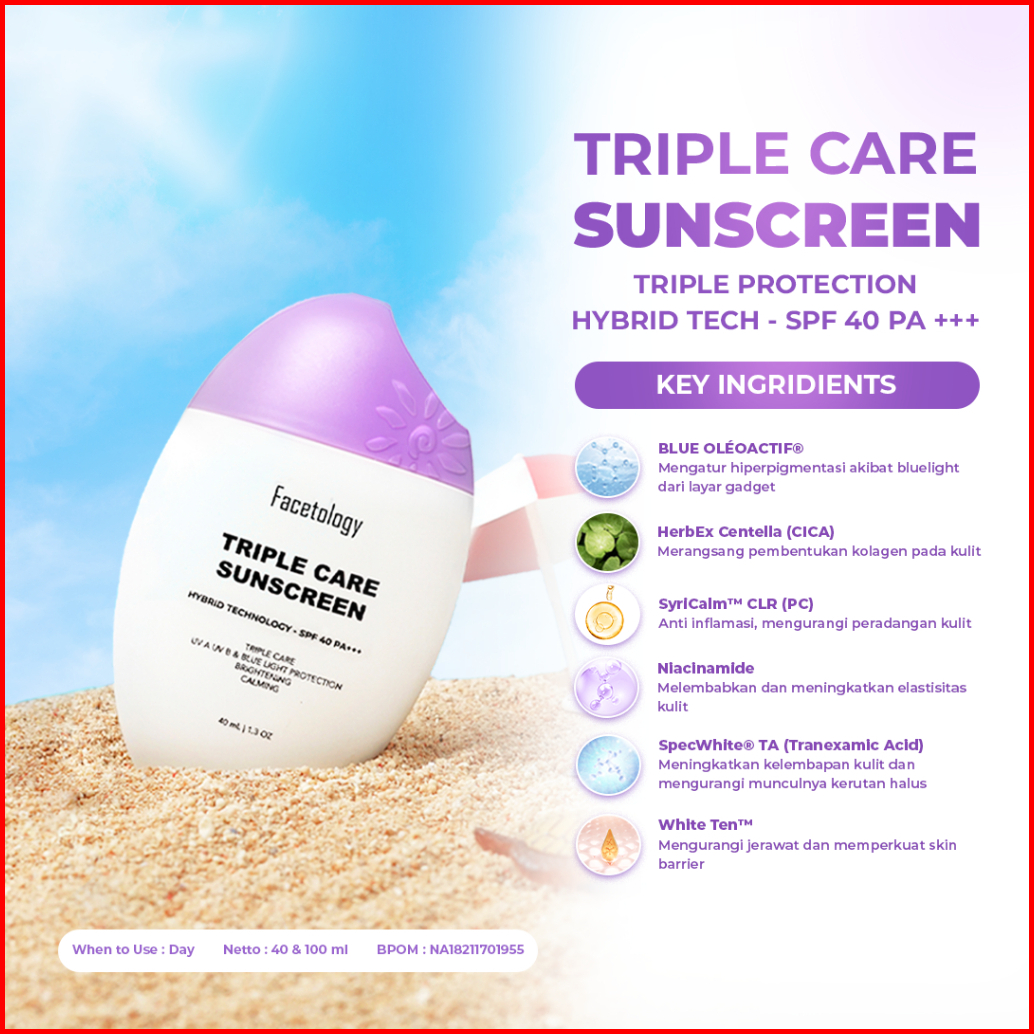 Facetology Bundling Triple Care Lip Protector Sunscreen Flavor Triple Care Sunscreen Spf 40 Pa 40ml