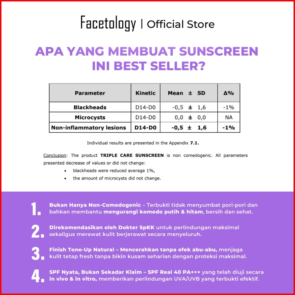 Facetology In Non Comedogenic Tested Triple Care Sunscreen Spf 40 Pa 40ml 3pcs