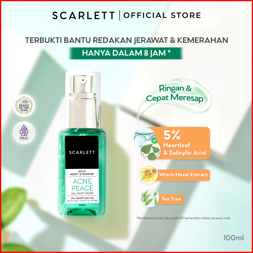 Scarlett Whitening Aqua Reset Barrier Acne Peace Gel Moisturizer 5 Heartleaf Salicylic Acid - Pelembab Wajah Untuk Kulit