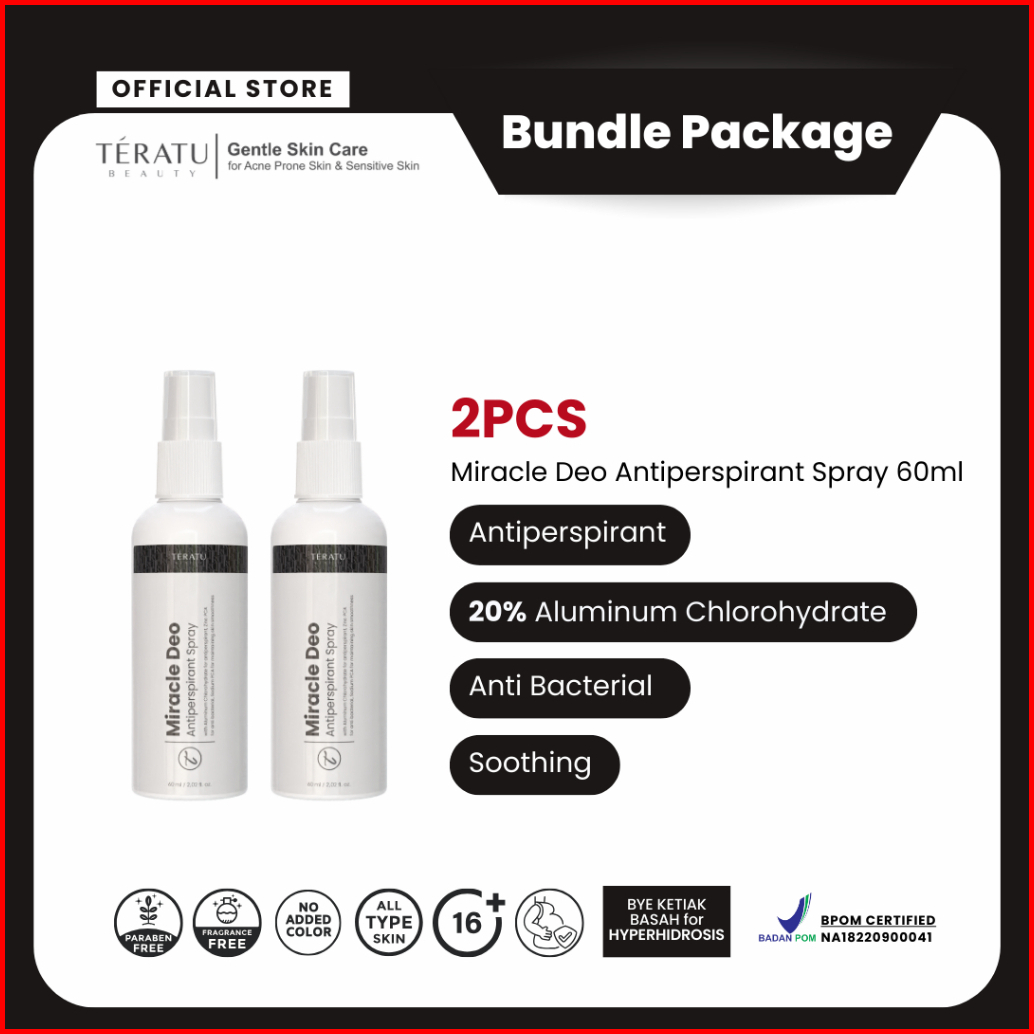 Bundle 2 Pcs Teratu Beauty Miracle Deo Antiperspirant Spray 20 Aluminum Chloride Sangat Efektif Mencegah Keringat Berleb