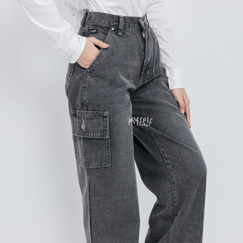 Myself Celana Highwaist Loose Cargo Jeans Wanita Philana