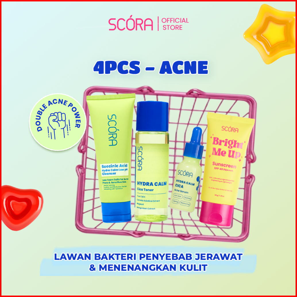 4 Pcs Bundles Scora Cleanser Series 100ml Scora Toner Series 80 Ml Scora Serum Series 20ml Scora Bright Me Up Sunscreen