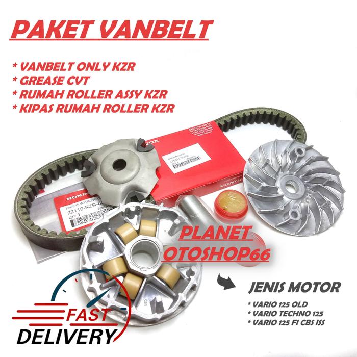 PAKET VANBELT ONLY KZR + RUMAH ROLLER A55Y KZR + KIPAS RUMAH ROLLER KZR + GREASE/GEMUK / HONDA VARIO 125 OLD / VARIO 125