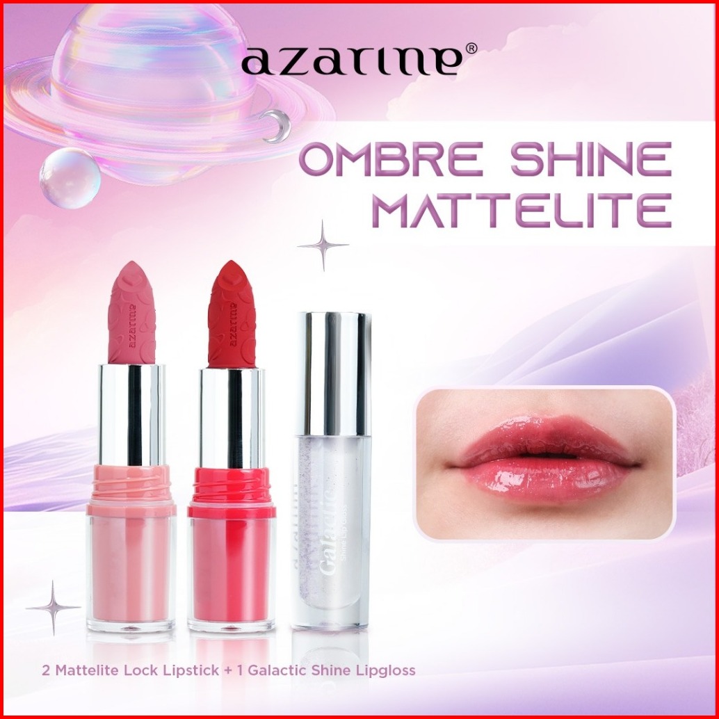 Azarine Ombre Shine Mattelite Kit 3 Pcs Lipstick Matte With Pigmented Color Lightweight Transferproof Smugeproof Galacti