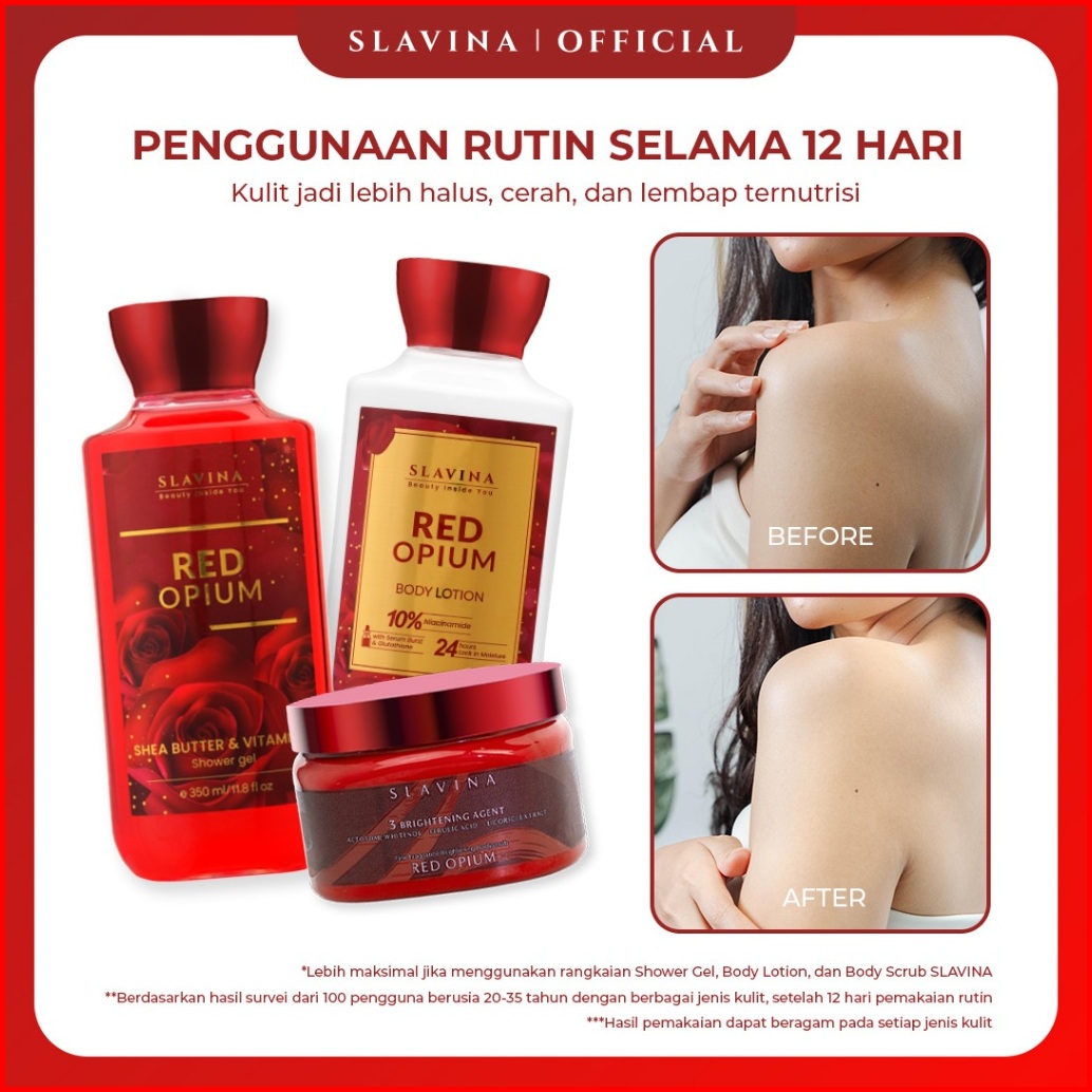 Slavina Bundle 3in1 Red Opium Body Scrub Shower Gel Body Lotion By Nagita Slavina Body Care Whitening Brightening Lulur