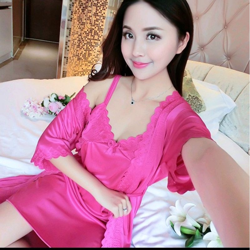 Baju Tidur Kimono Dres Lingerie Set 2In1/ Luar Sama Dalaman