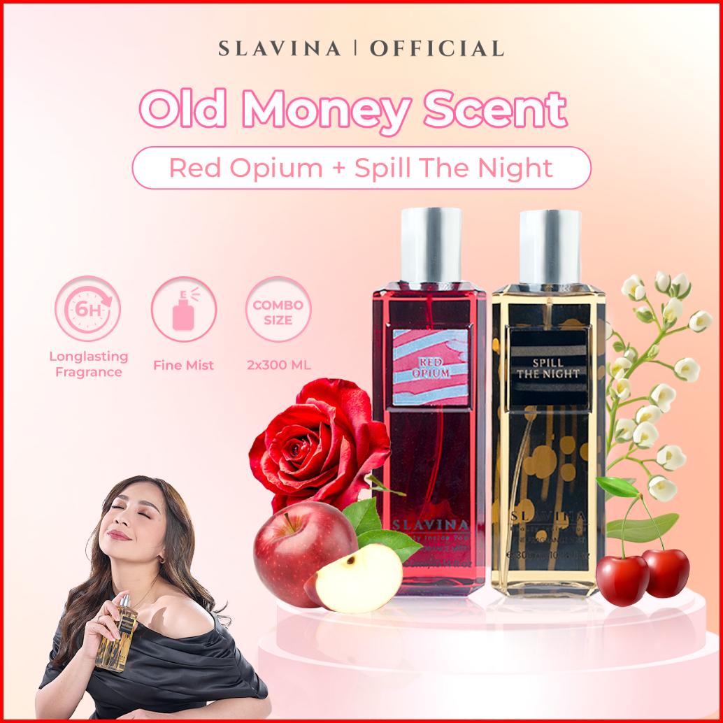 Slavina Bundle 2pcs Body Mist Old Money Scent Red Opium Spill The Night By Nagita Slavina Parfum Wanita Tahan Lama Dan W