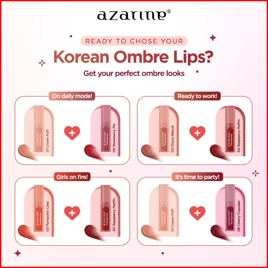 Azarine Perfect Ombre Lips Kit Tinted Lippie Cake Lip Tint Ala Korea Longlasting Hydrating Moisturizing 2x2.9ml