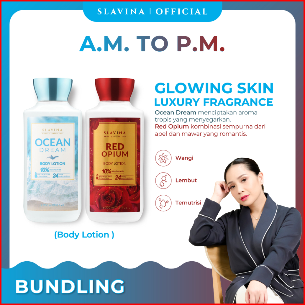 Slavina Bundle 2pcs Body Lotion Ocean Dream Red Opium A.m. To P.m. For By Nagita Slavina Body Lotion Whitening Handbody