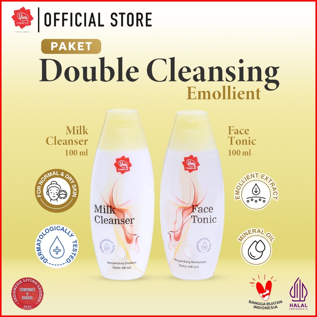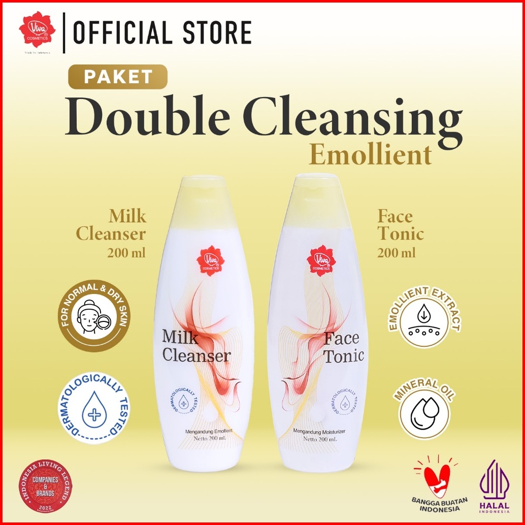 Promo Paket Double Cleansing Emollient - Viva Milk Cleanser Face Tonic Emollient 100 Ml 200 Ml