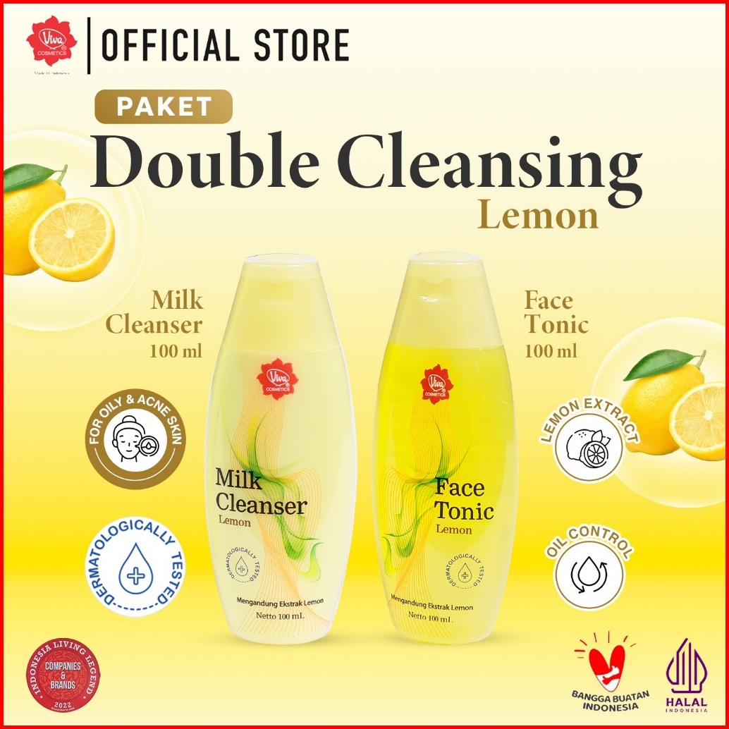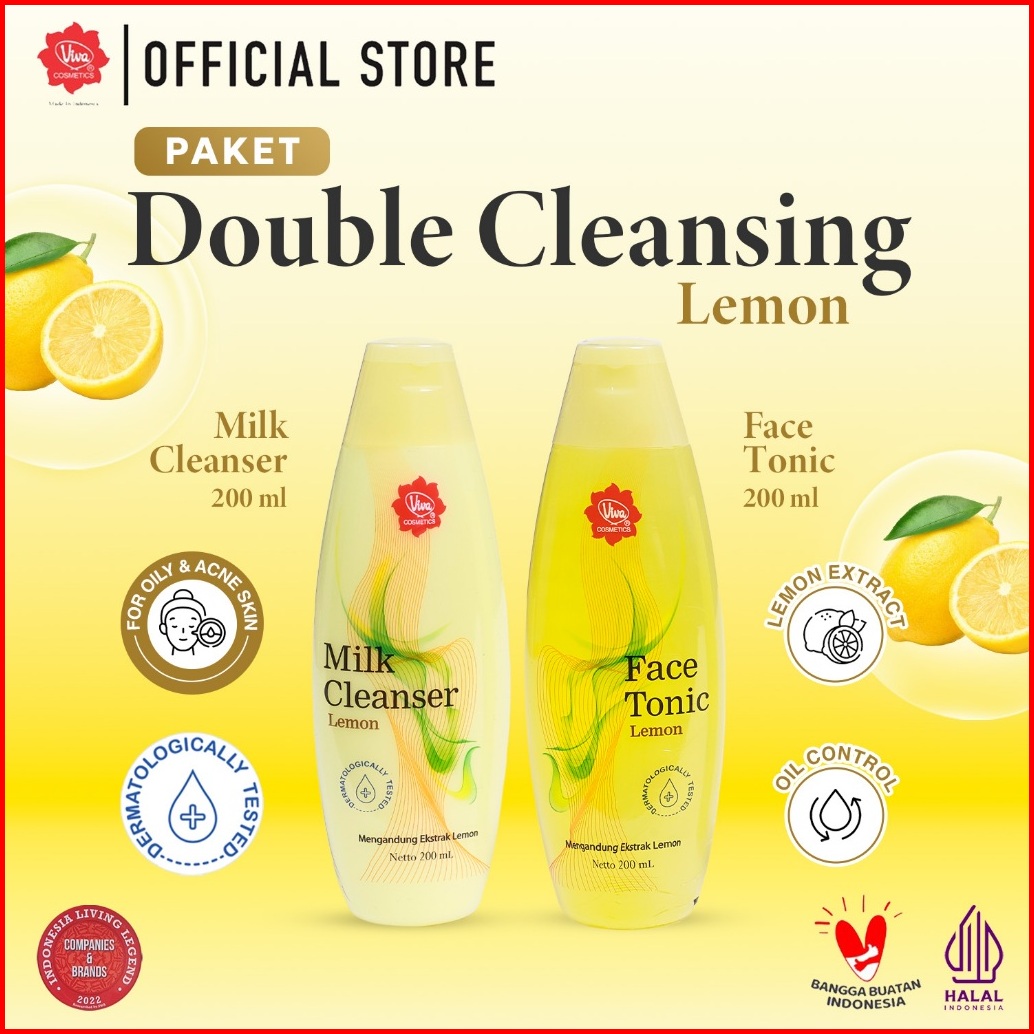Promo Paket Double Cleansing Lemon - Viva Milk Cleanser Face Tonic Lemon 100 Ml 200 Ml