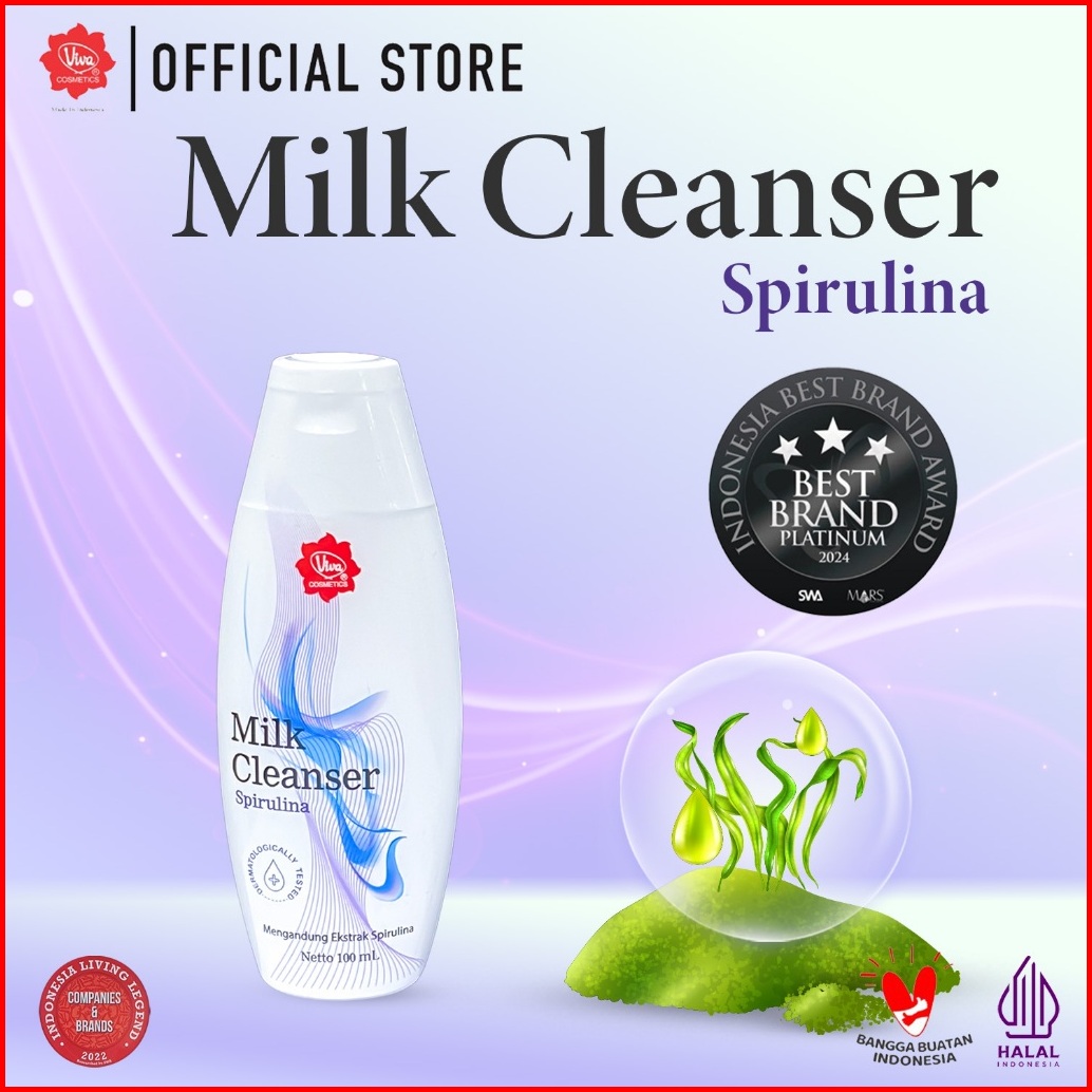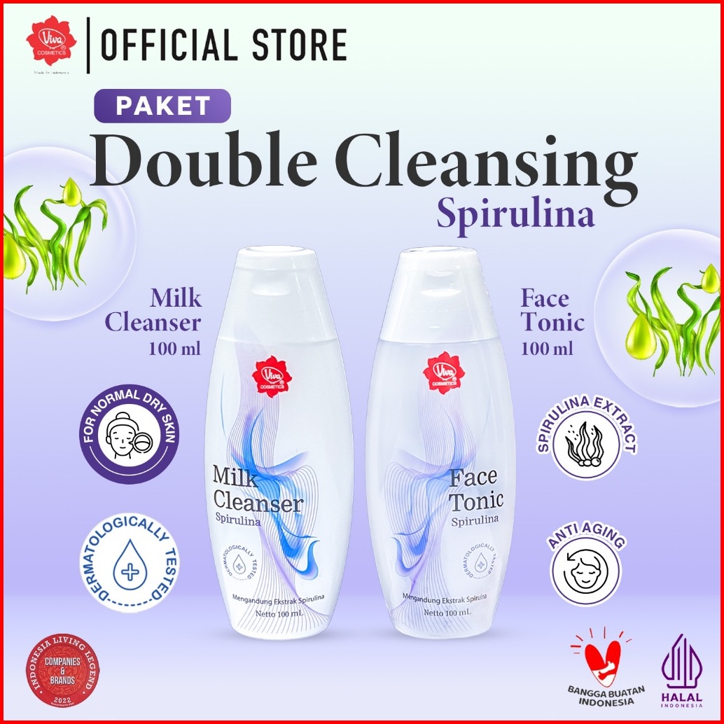 Promo Paket Double Cleansing Spirulina - Viva Milk Cleanser Face Tonic Spirulina 100 Ml