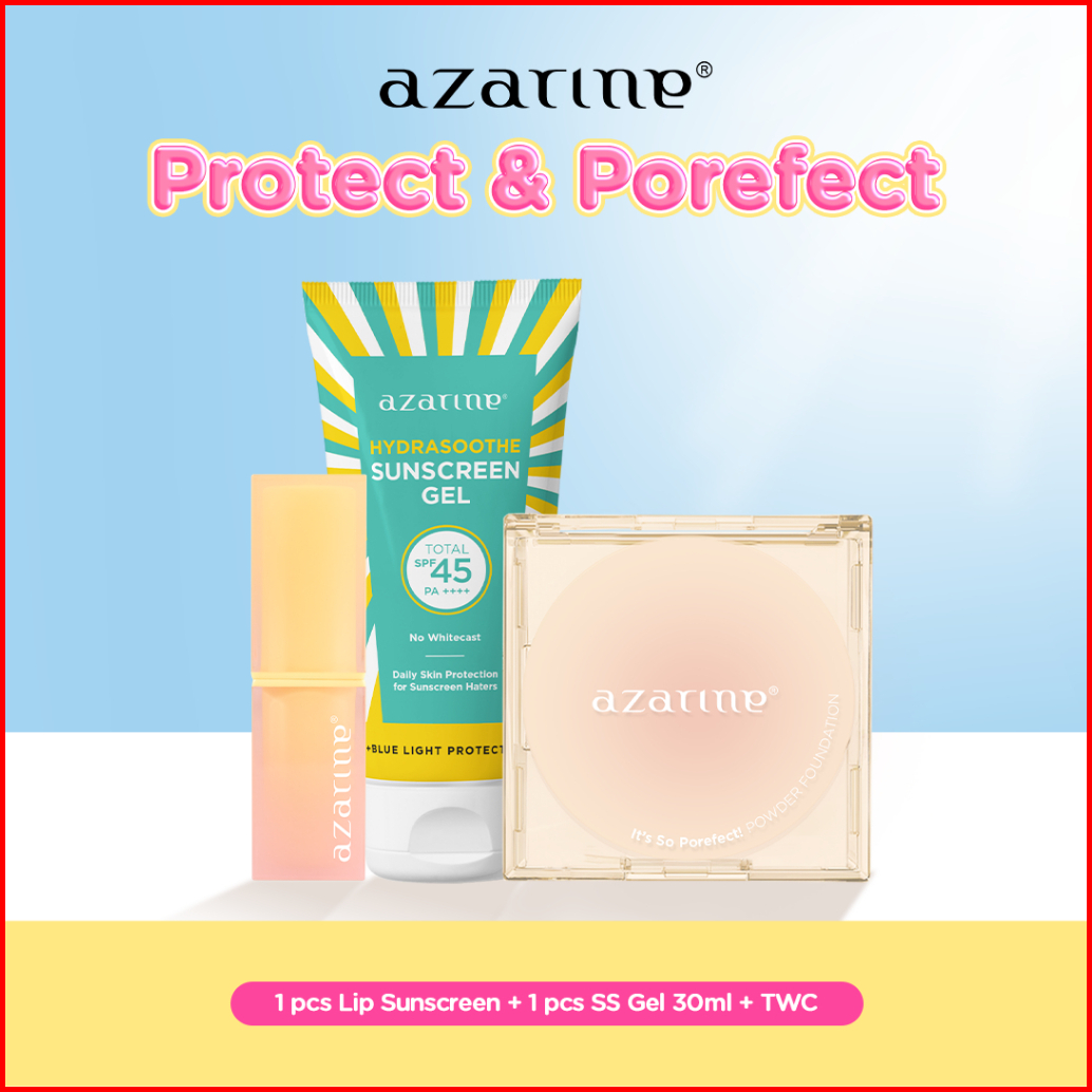 Azarine Protect Porefect 3 Pcs Glowkiss Sunscreen Lip Balm Sunscreen Hydrasoothe Gel 30ml Porefect Pelembab Bibir Spf 35