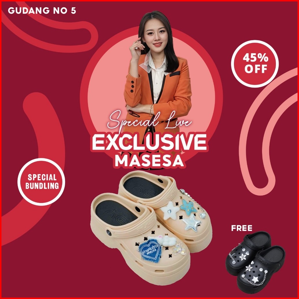 Masesa X Gudangno5 Bundle 2in1sandal Fuji Eva Rubber Sandal Slop Wedges Antislip Jibbitz Bintang