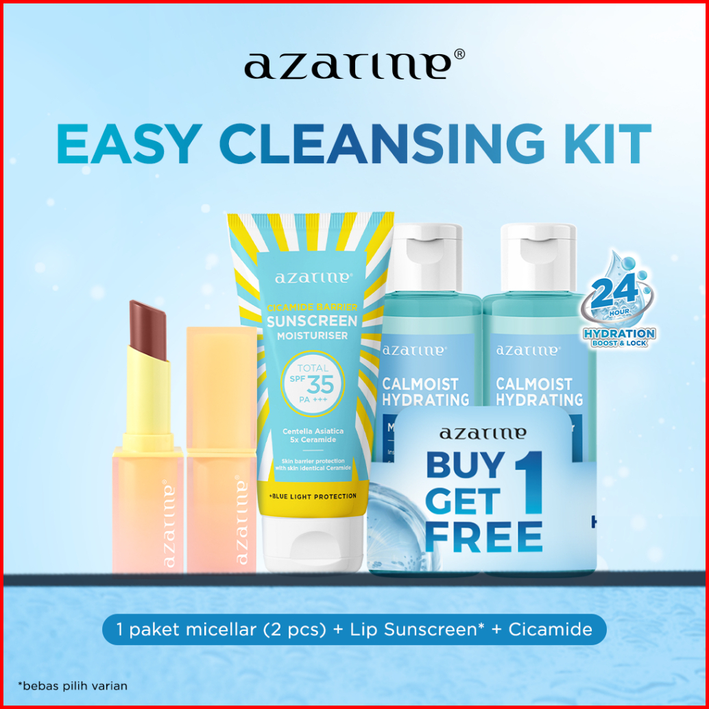 Azarine Easy Cleansing Kit 3 Pcs Calmoist Micellar Water Lip Sunscreen Pelembab Bibir Spf 35 Pa Sunscreen Best Seller Sp