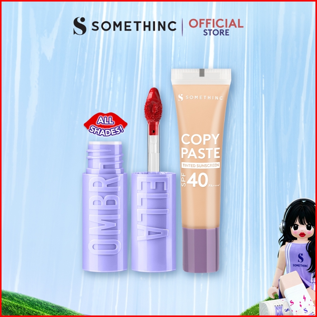 Somethinc 2 Pcs Juicy Lip Flawless Skin Ombrella Hydra Juicy Lip Tint Copy Paste Tinted Sunscreen Spf 40 Pa