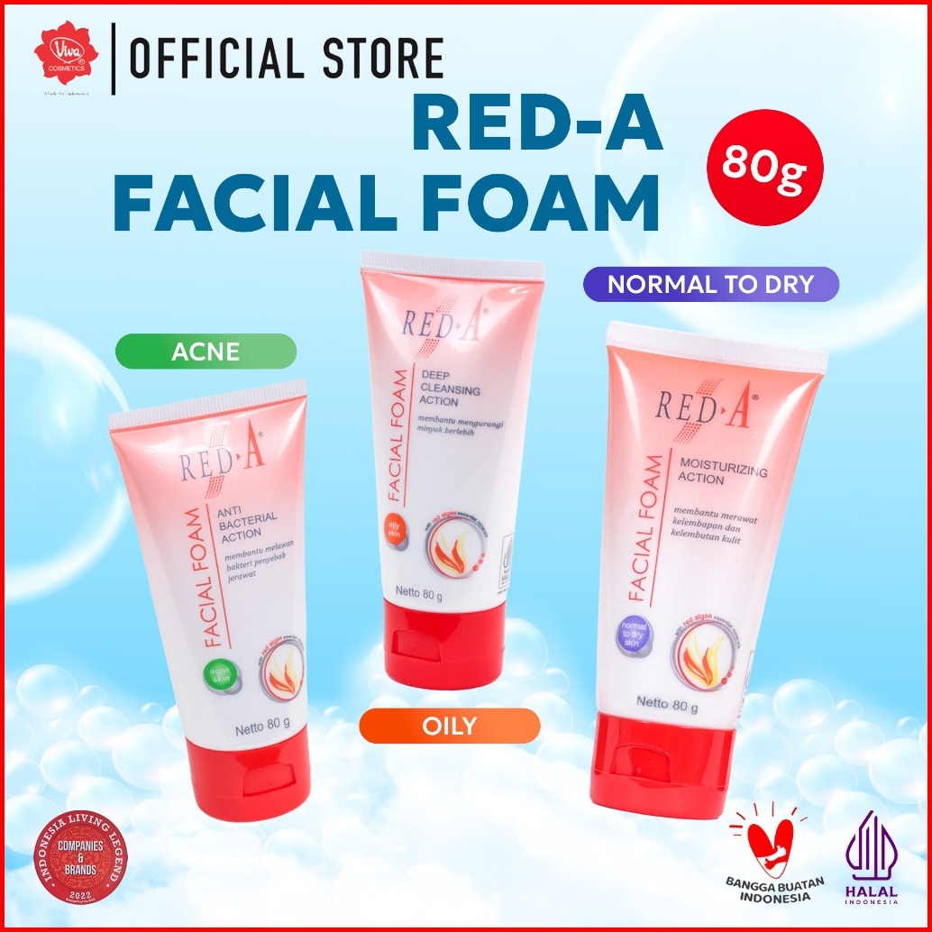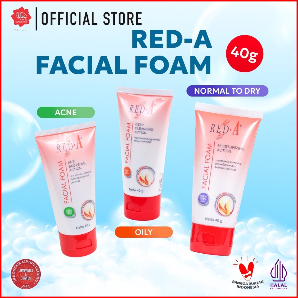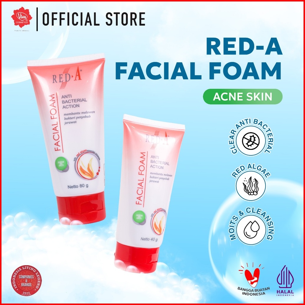 Red-a Facial Foam For Acne Skin With Oil Absorbent Triclosan Antibacterial Tersedia 40 Gr 80 Gr