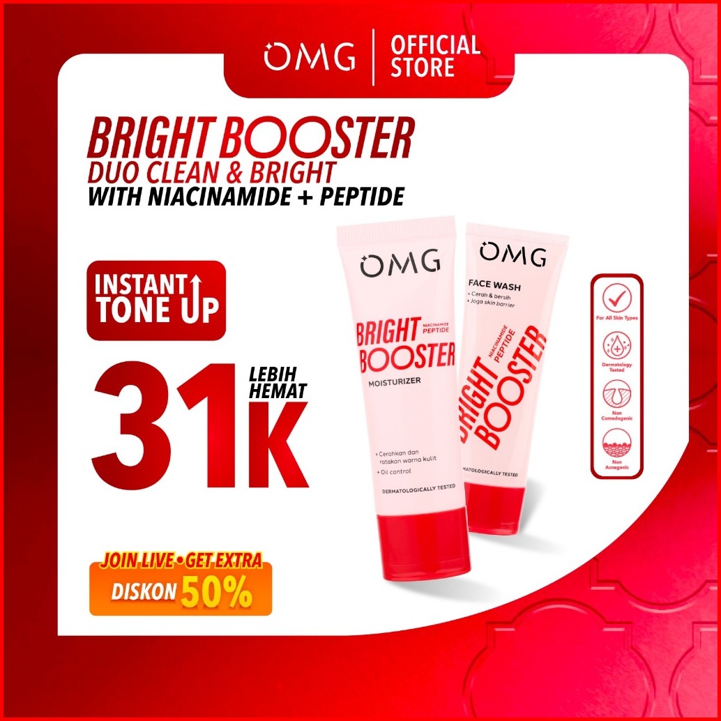 Omg Duo Clean Bright Booster Kit - Tone Up Moisturizer Melembabkan Mencerahkan Dan Menjaga Skin Barrier - Sabun Cuci Muk