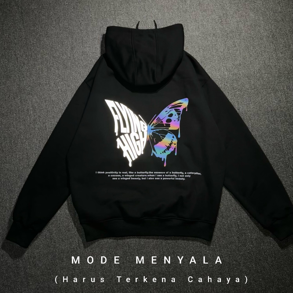 Hoodie Jumper Oversize Flying High Sablon Reflektif Menyala Pelangi