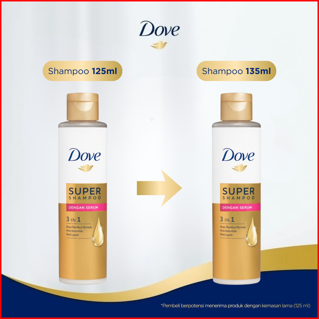Dove Super Shampoo 3 In 1 135 Ml Shampoo Anti Rambut Rontok Dan Ketombe