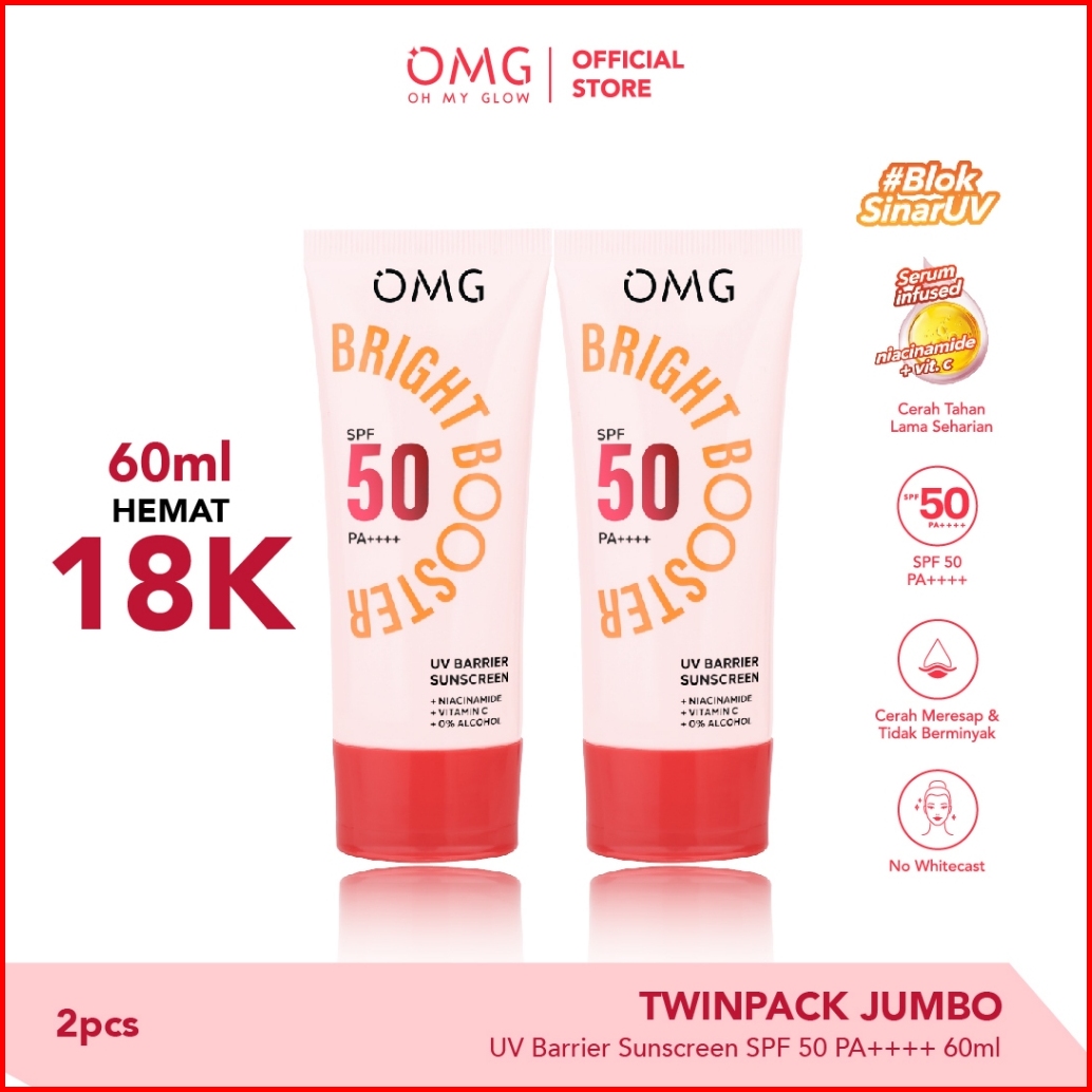 Twinpack Jumbo Omg Oh My Glow Uv Barrier Sunscreen Spf 50 Pa 60 Ml - Sunscreen - Mencerahkan Dengan Kandungan Serum Vit