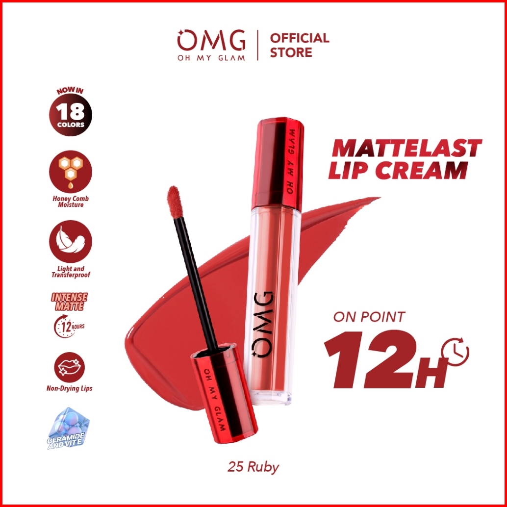 Omg Oh My Glam Mattelast Lip Cream 25 Ruby 2.9 G - Lip Cream Matte Dengan Warna Intense Tahan Lama Ringan