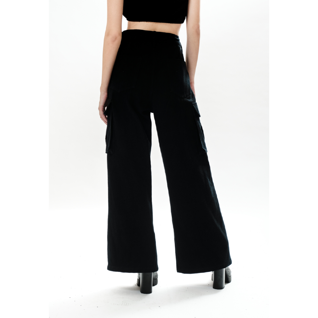 OCWA JESS WIDELEG CARGO BLACK JEANS DENIM