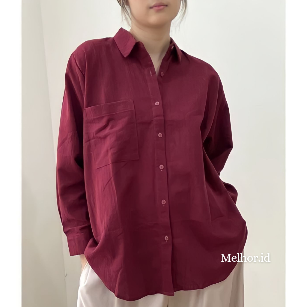 Olivia Linen Shirt Kemeja Linen Oversize Wanita Premium Quality Pocket
