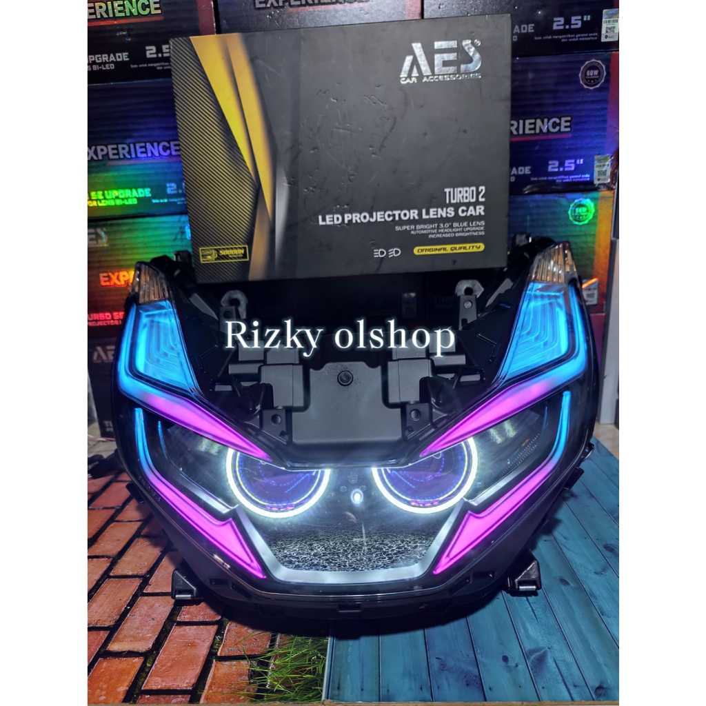 Projie projector Biled Aes turbo gen 2 3 inch PCX 160 Sepaket reflektor ORI lengkap saklar vixion
