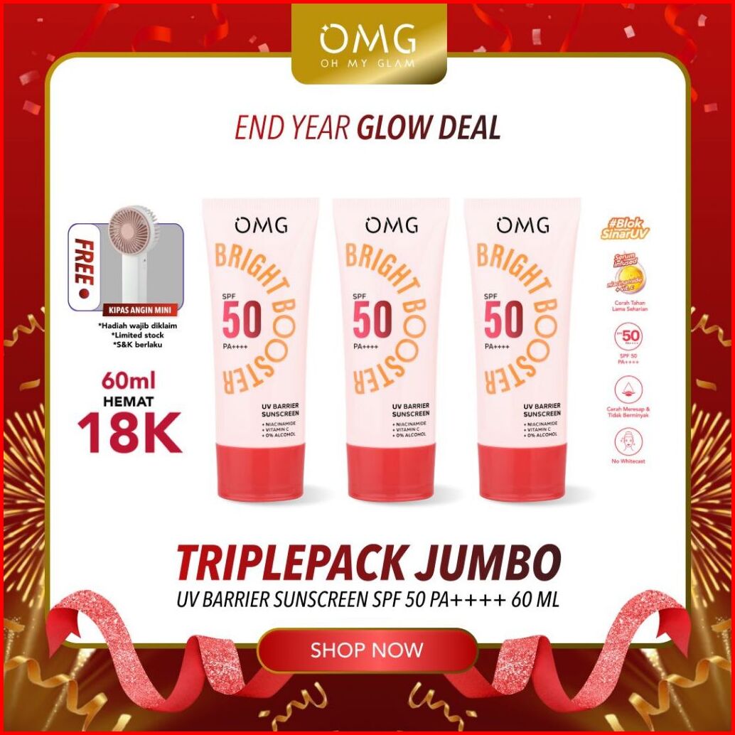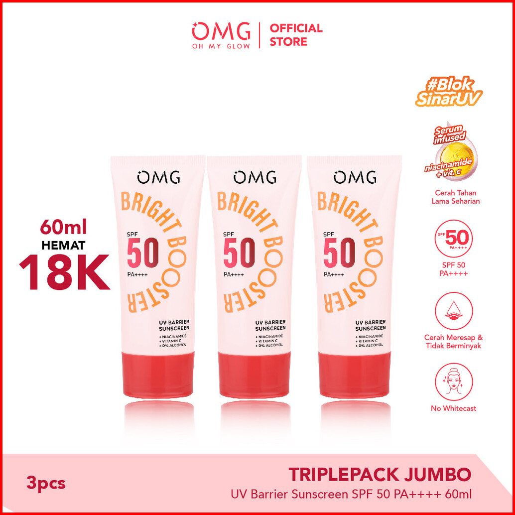 Triplepack Jumbo Omg Oh My Glow Uv Barrier Sunscreen Spf 50 Pa 60 Ml - Sunscreen - Mencerahkan Dengan Kandungan Serum Vi