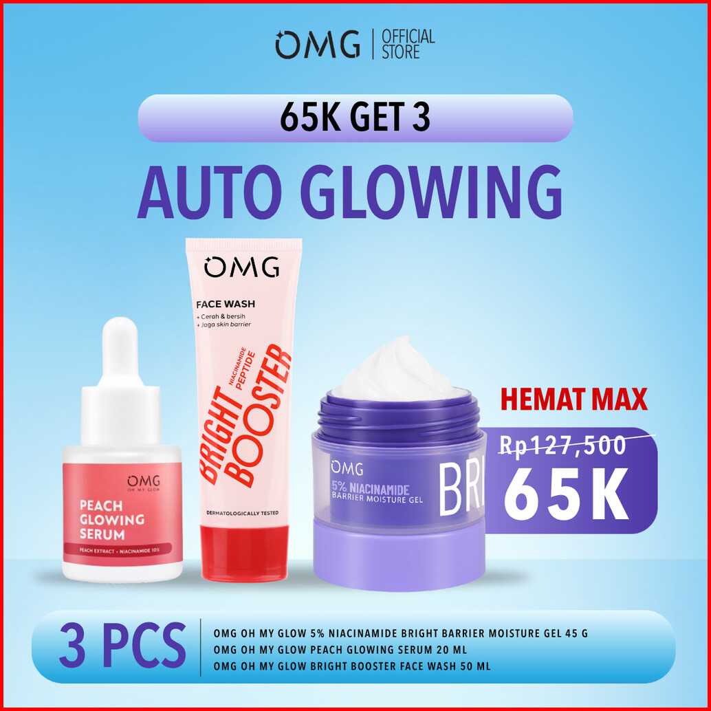 65k Get 3 Omg Oh My Glow 3in1 Auto Cerah Anti Jerawat - Moisturizer Facewash Serum - Pelembab Wajah - Mencerahkan Wajah