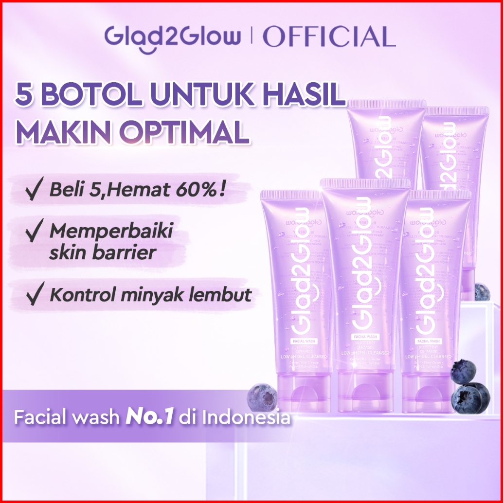 Beli 5 Hemat 60 Glad2glow Blueberry Ceramide Low Ph Gel Cleanser 5pcs 7 Hari Memperbaiki Skin Barrier Kontrol Minyak Lem