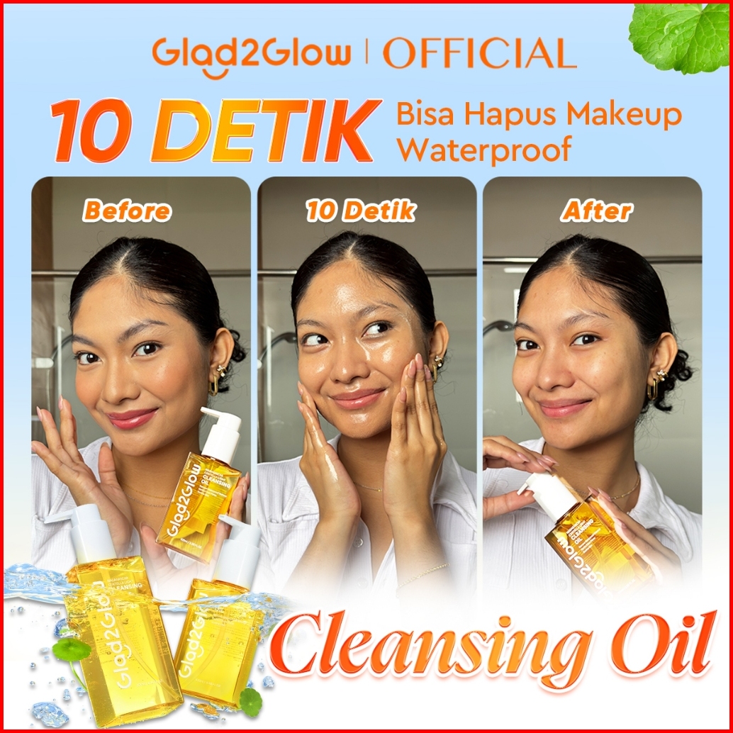 Glad2glow 2in1 Set Cleansing Oil Clay Mask - Eksfoliasi Cerah Anti Jerawat - Untuk Kulit Berminyak Berkomedo G2glow Stor