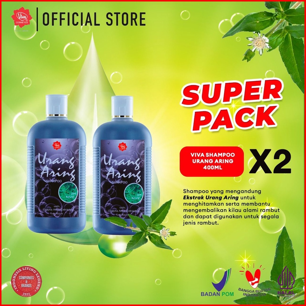 Super Pack Viva Shampoo Urang Aring For Black Shine Hair - 400ml - 2 Pcs