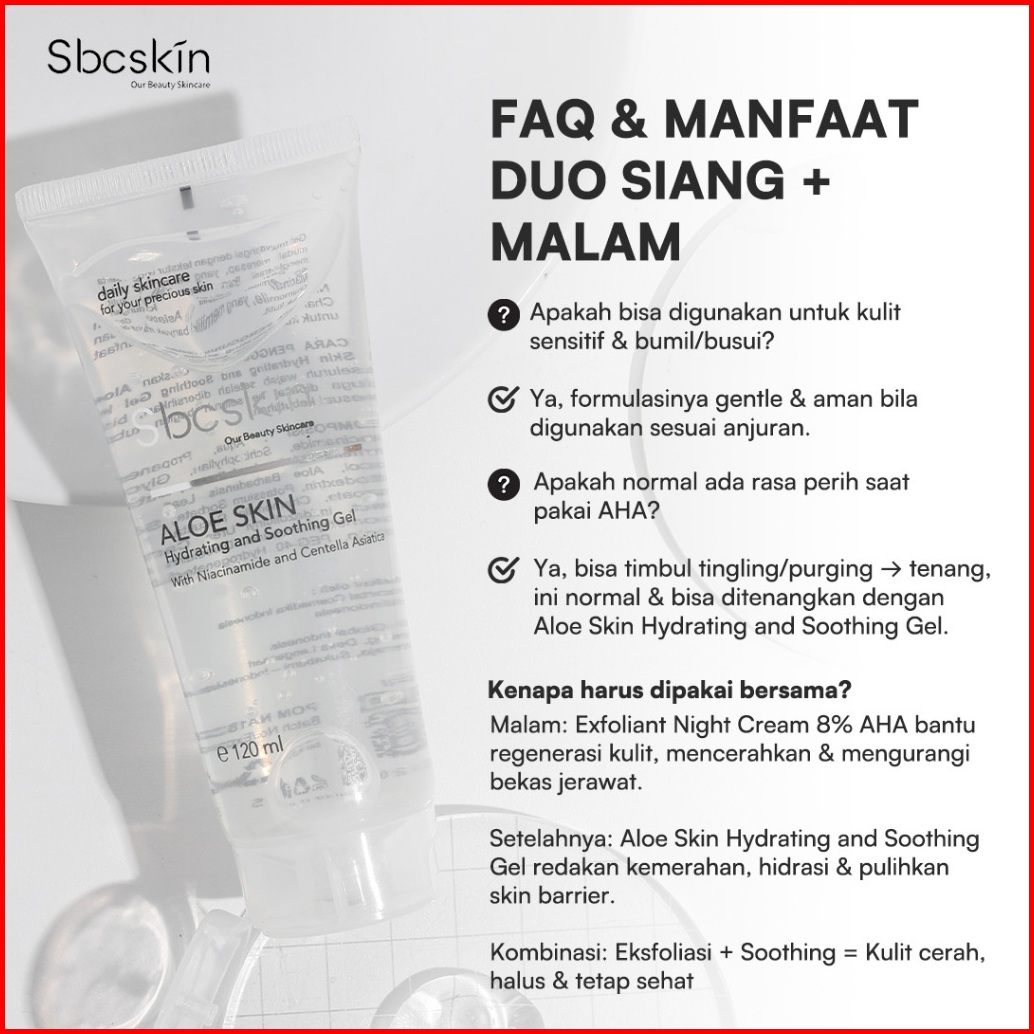 Buy 1 Get 1 Sbcskin Bundling Aloe Skin Hydrating And Soothing Gel Exfoliant Night Cream 8 Aha