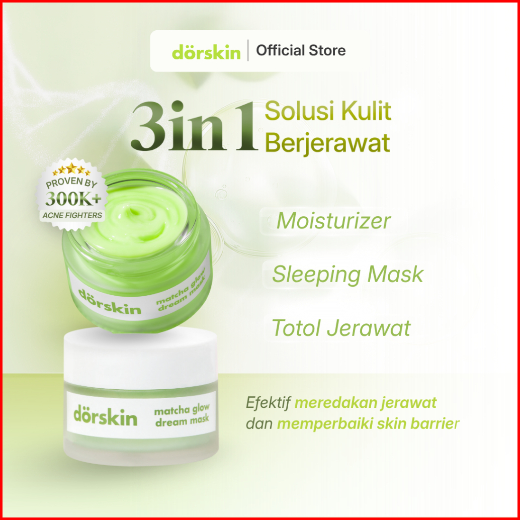 Flash Sale Dorskin Matcha Glow Dream Mask Moisturizer - Multifungsi Tuntas Jerawat Pelembap Sleeping Mask Dan Totol Jera