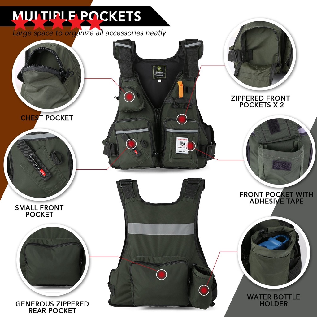 Pelampung ROMPI Keselamatan PANCING Luar FISHING LIFE JACKET MULTI SLOT Ruangan Sejuk Jaket Keselamatan Bantalan Unggul