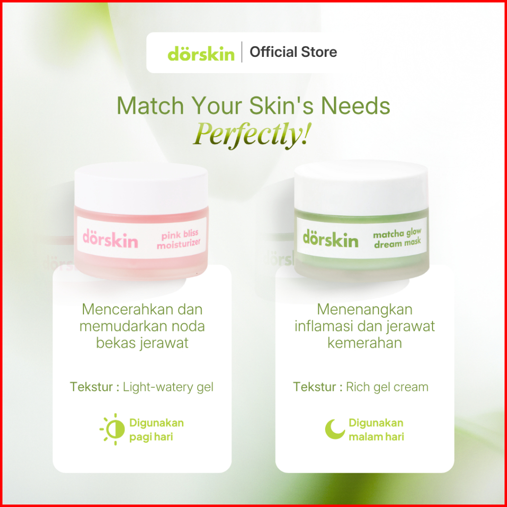 Dorskin Double Moisturizer Calm Glow Skincare Pack Dorskin Matcha Glow Dream Mask Pink Bliss Moisturizer 2in1 Acne Care