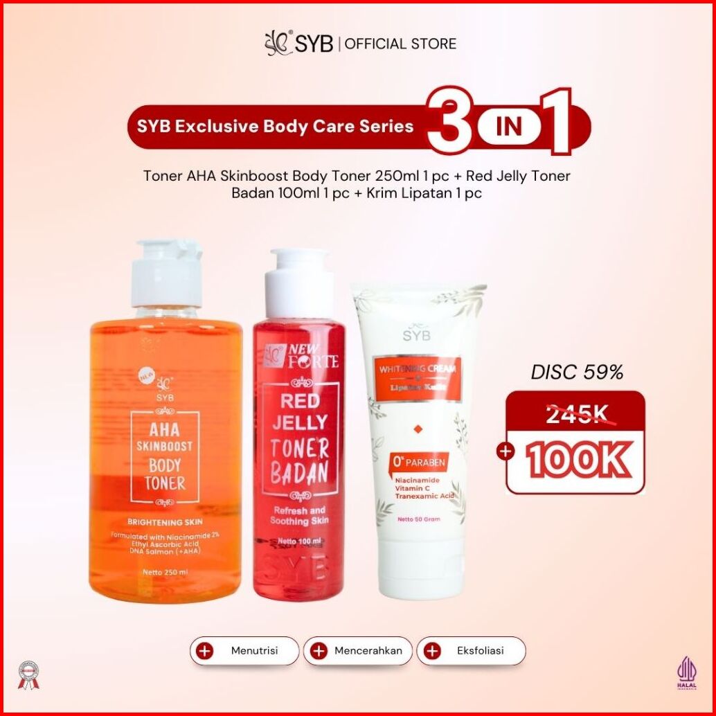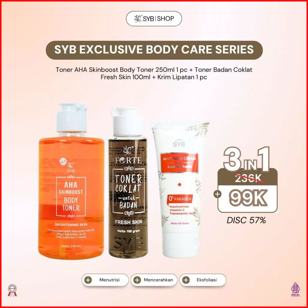 Syb Exclusive Body Care Series - Bundling Aha Skinboost Body Toner 250ml Toner Badan 100ml Whitening Cream Lipatan Kulit