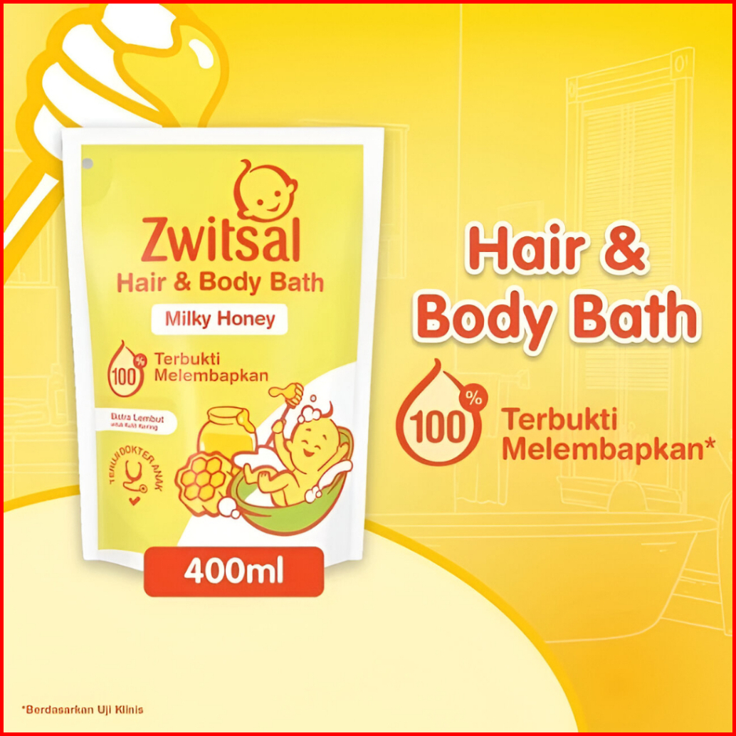 Zwitsal Baby Bath Hair Body Milky Honey 400ml Sabun Mandi Bayi 2in1 Original Lembut Aman Bayi