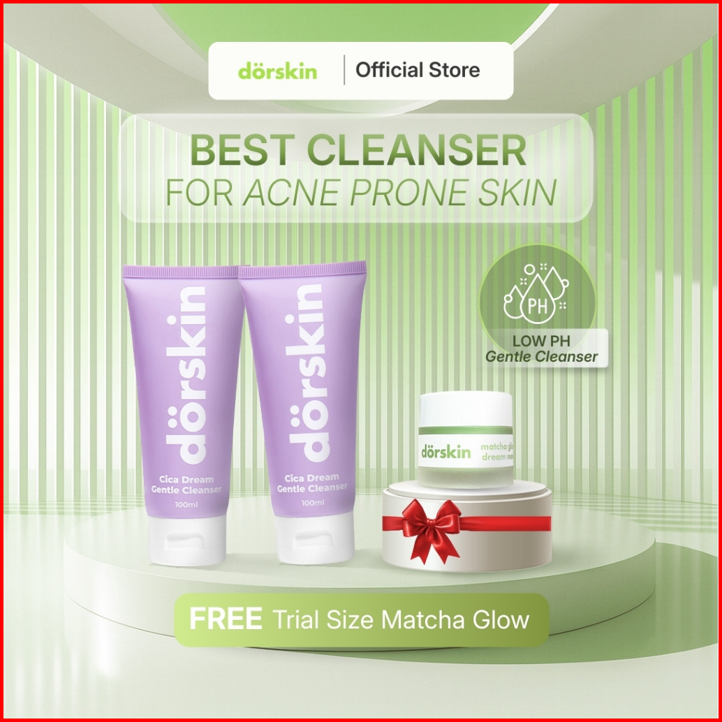 Exclusive Promo - Dorskin Buy 2 Get 1 Best Acne Face Wash Bundle - Facial Wash Cica Dream Cleanser Moisturizer Matcha Gl