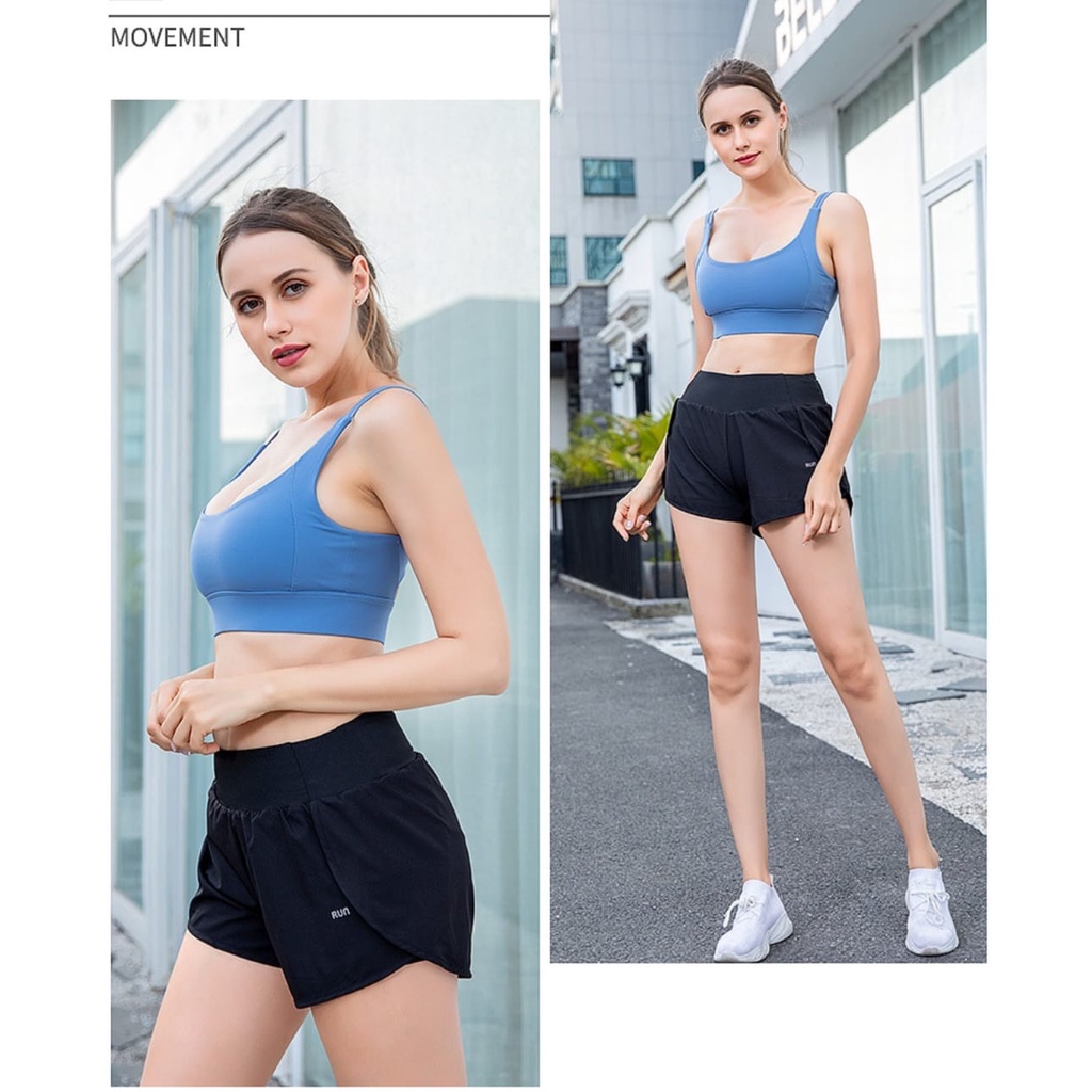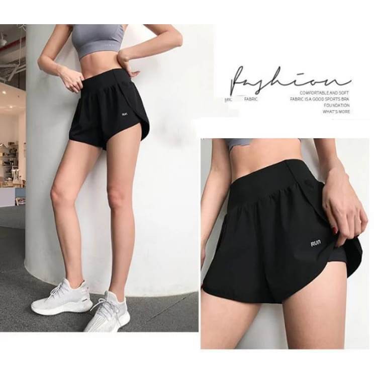 RUN Celana Sport Pendek Wanita Hotpants Senam Aerobik Gym Fitness Yoga Tenis Padel Golf