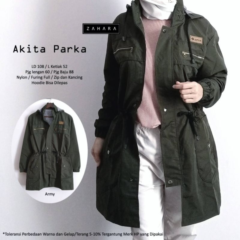 Outer Jaket Coat Panjang Wanita Original Brand Zahara Bahan Nylon Kode: Akita Parka - Smallstepsfashion