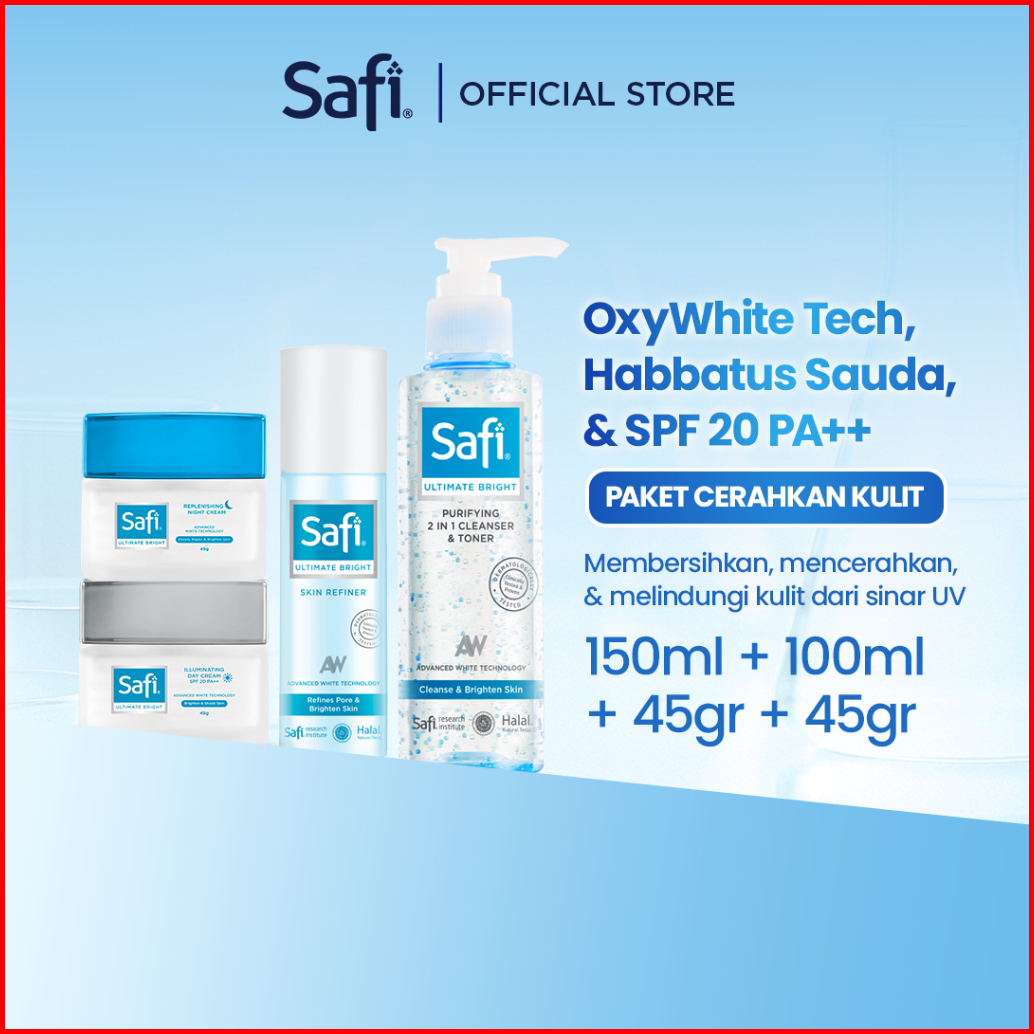 Safi - Ultimate Bright - Bright Package - Paket Mencerahkan Wajah 2in1 Cleanser Toner Day Nightcream 45gr