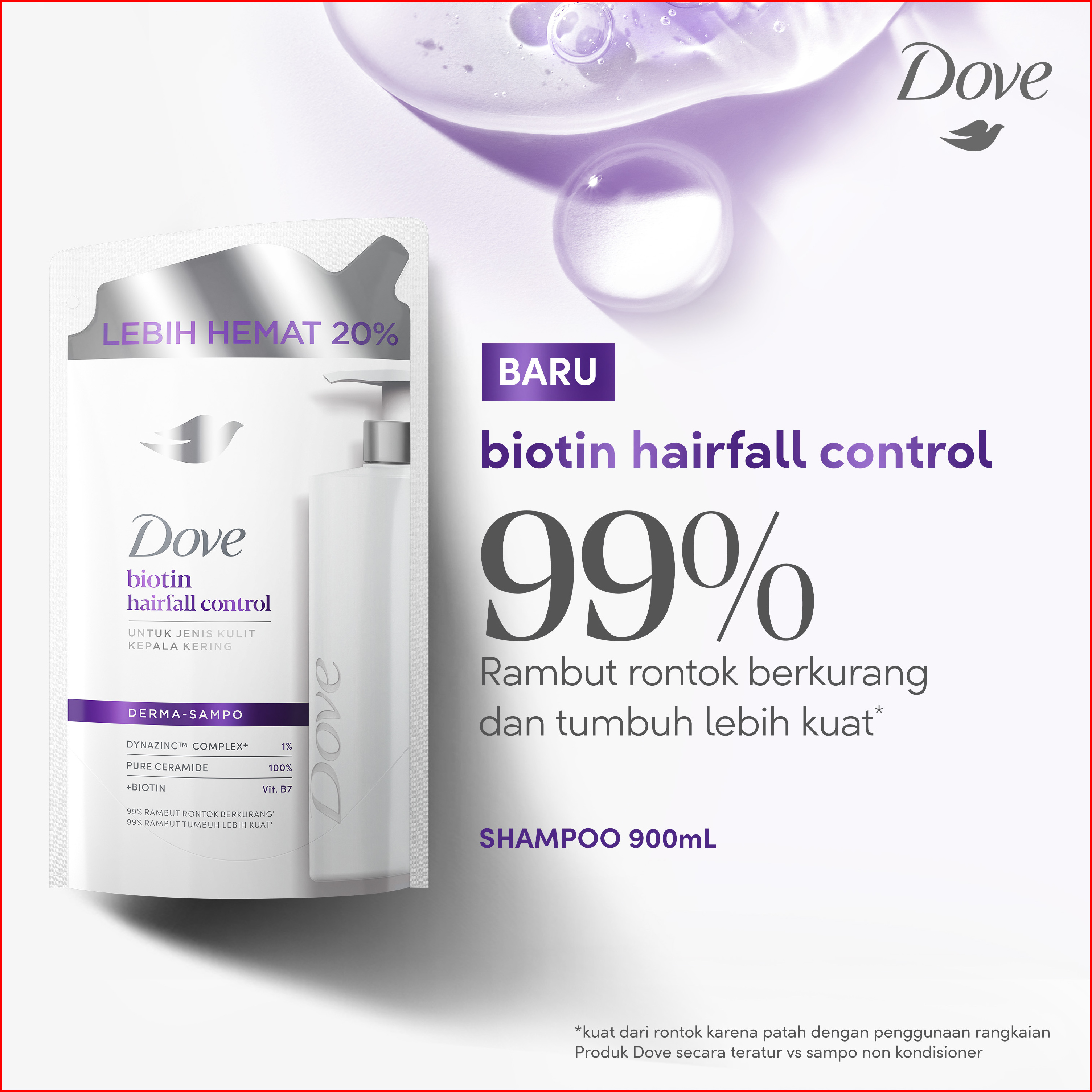 Dove Shampoo Biotin Hairfall Control 900ml Pouch Sampo Perawatan Rambut Rontok Untuk Jenis Kulit Kepala Kering Dan Sehat