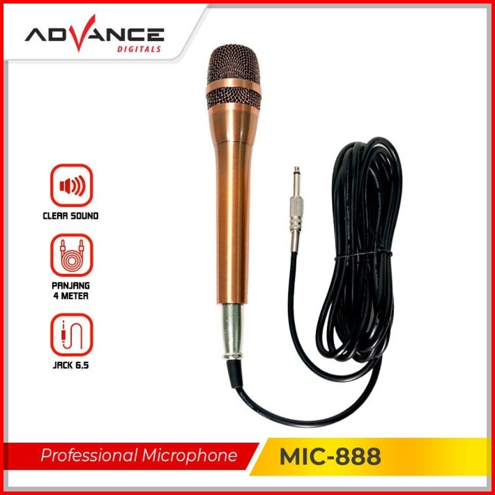 Advance Mic-888 Single Profesional Dynamic Microphone Kabel Karaoke Garansi Resmi 1 Tahun