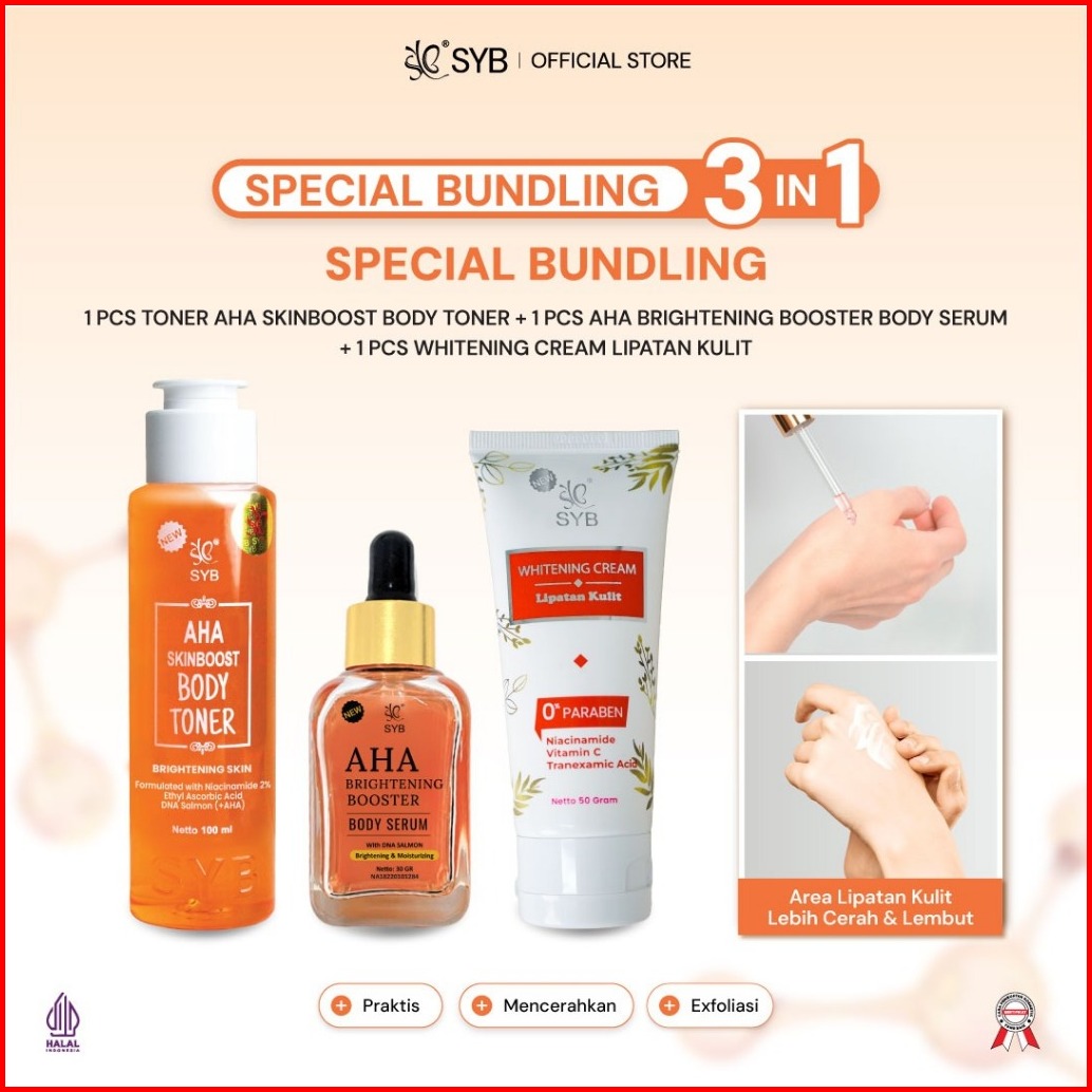 Bright Smooth Body Set- Aha Toner 100ml Whitening Cream Lipatan Aha Brightening Body Serum 30gr