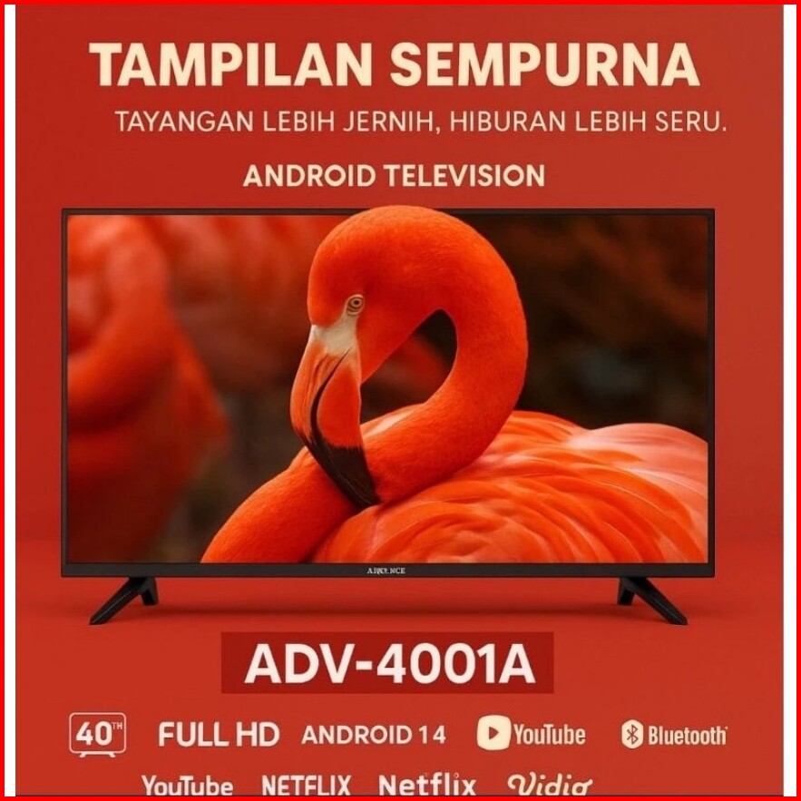 Adv-4001a Advance Android Tv Google Tv Smart Tv 40 Wifi Lan Tv Digital Dvb-t2 Garansi Resmi 1 Tahun Frameless Tahun Fhd
